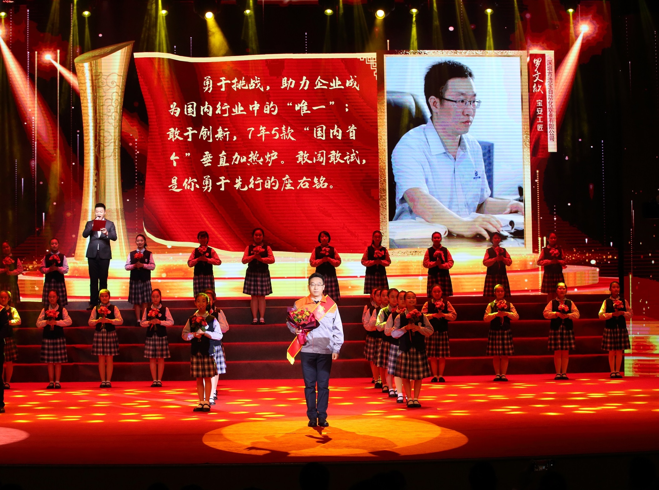 浩寶公司研發(fā)人員羅文欣在”寶安工匠“頒獎(jiǎng)典禮現(xiàn)場(chǎng)
